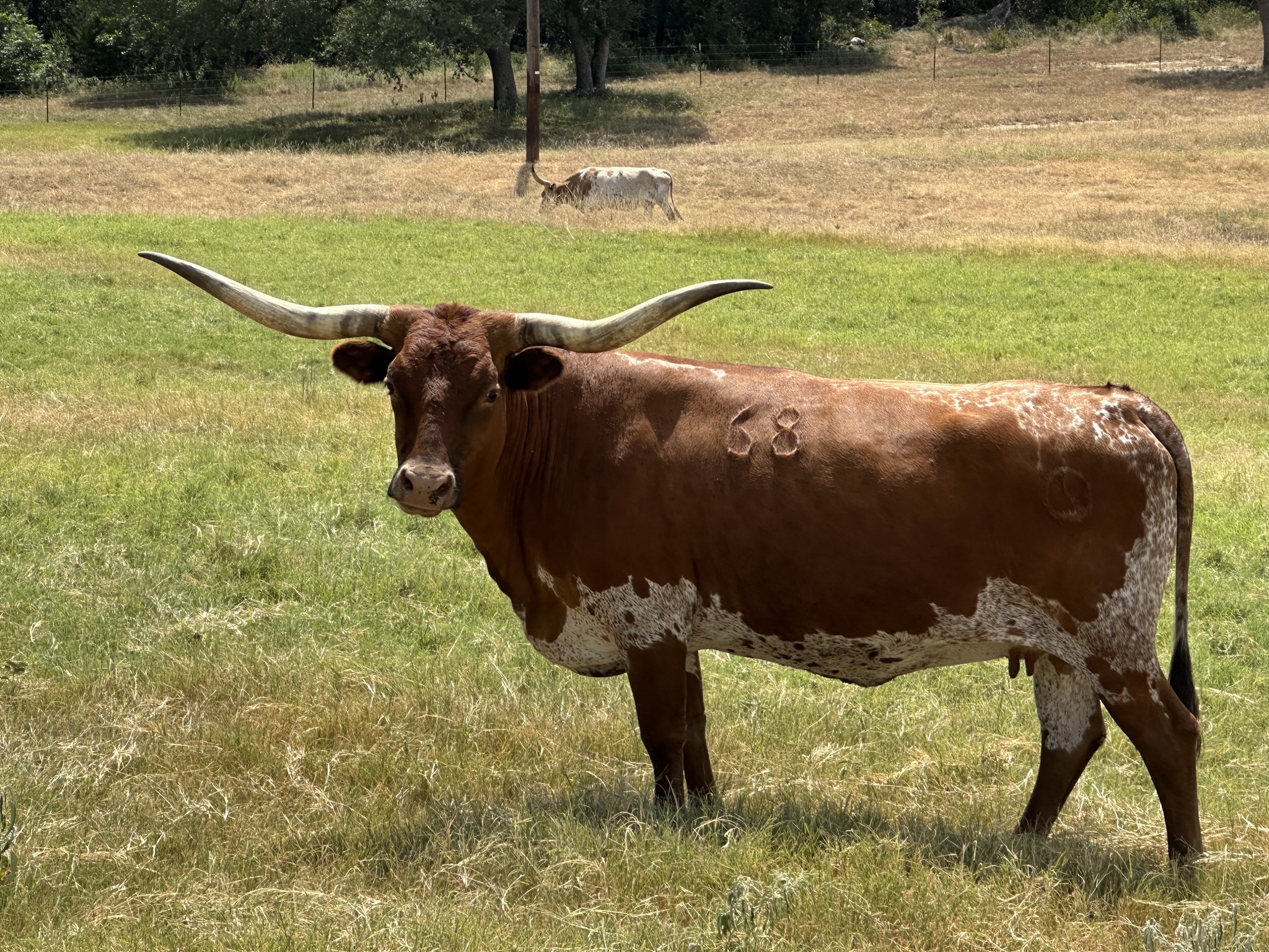 Sunhaven is a Fifty Fifty daughter. She got the body and the good characteristics of a foundation cow just not the horn you might desire. Her calves are big bodied and have good potential. Check out her bull calf we have been showing Copy Fifty Bucks. He's holding his own and going up the standings in the NLFR.