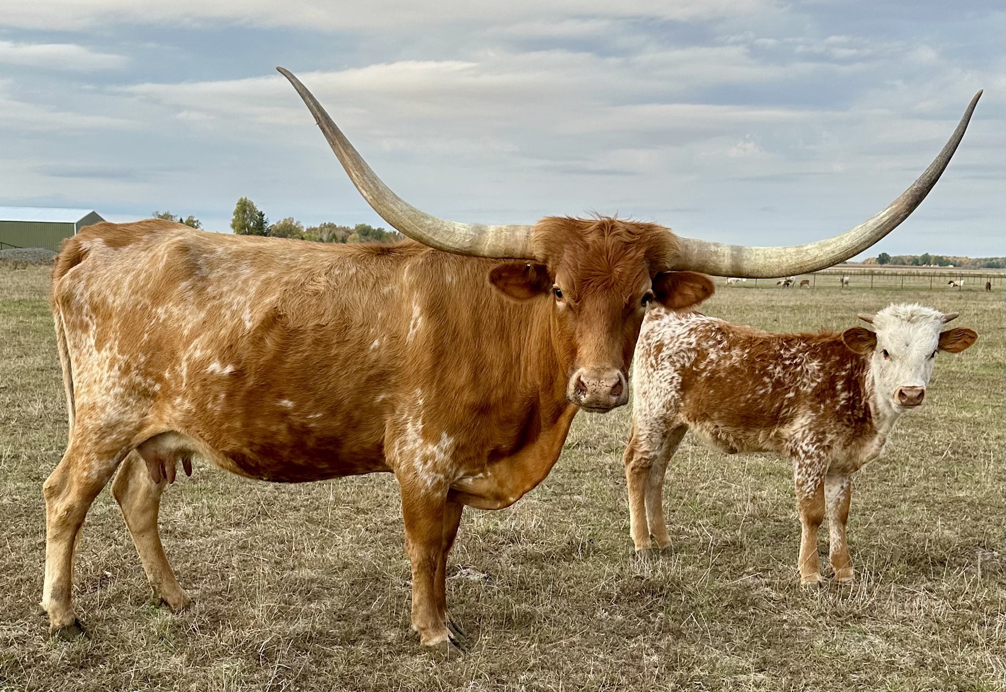 This heifer is going to be a stunning cow! G & L Painted Savage has continuously sired spectacular daughter. She is dog gentle, easy to handle and her dam is always an overachiever. We love cows the outproduce themselves! Her pedigree is stacked for success with ZD Kelly, The Shadow and the immortal Butler bull, Bold Ruler. She has not been exposed. Horns are exploding in growth, 59 3/4" TTT on 4/20. This heifer has not been exposed. She is going to be an exceptional cow.