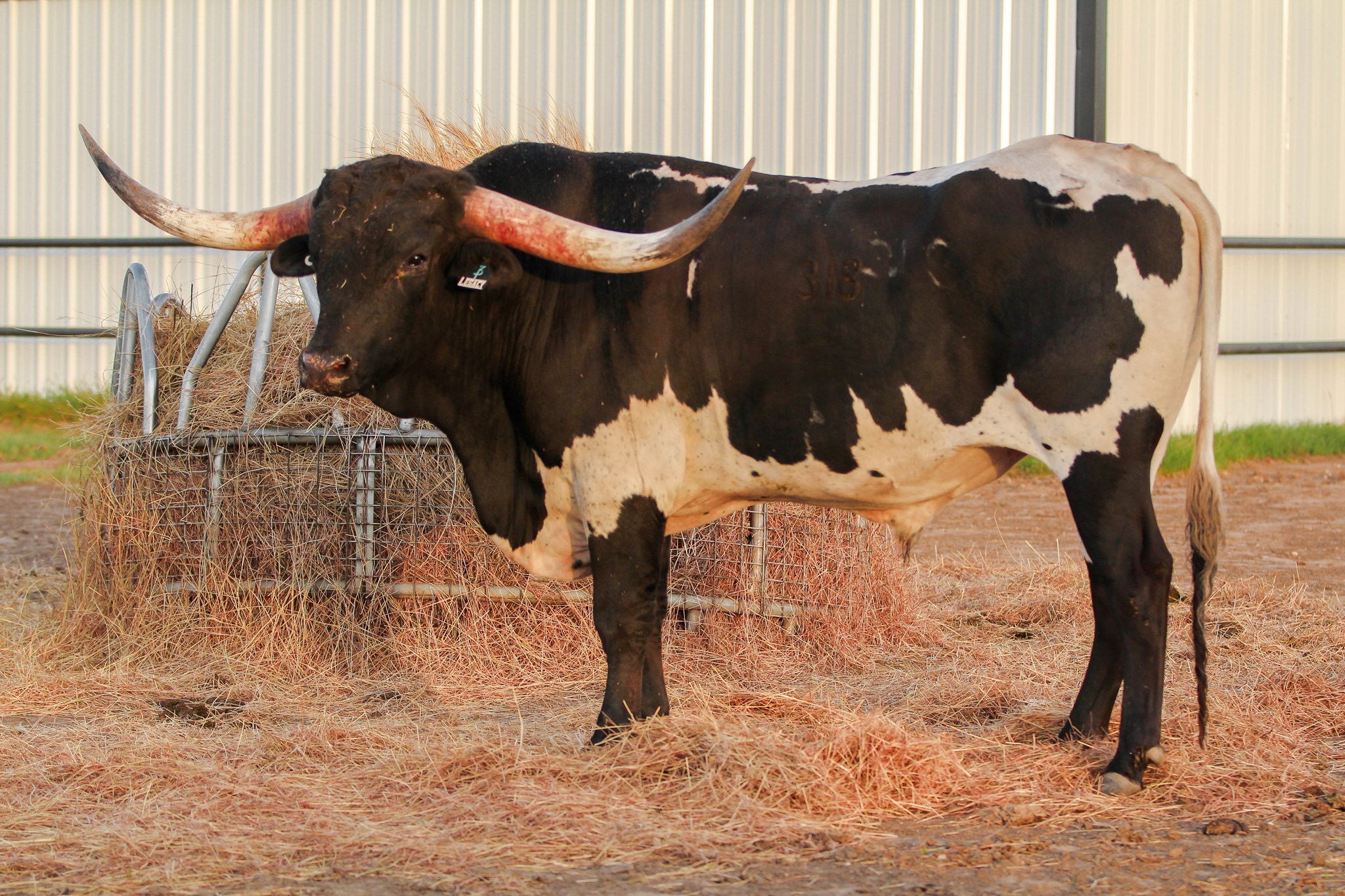 Born onsite at the Legacy sale out of the mid 90's TTT true black PG Black Friday and the first bull out of the over 100" TTT BR Jungle Jim. He is a true black complete Cowboy Tuff outcross bringing in TCC Houdini, TTT Jammin Jenny, PCC Front Runner, and WS Jamakizm. He measured at 75" TTT at 3 with a hip height of 58", scrotal of 33", and weight of 1600 lbs. He continues to grow and impress us with his measurement history and his demeanor. You won't find a sweeter, more gentle giant. He placed in the Top 25 of the NFLR in his last year of showing. Legacy's calves are leggy, colorful, and correct. He sired his first homozygous bull calf this past Spring and his first bull calf measured 37" TTT at a year and his first heifer measured 40" TTT at a year. SEE HIM IN BULL ALLEY THIS YEAR IN EL RENO, OKLAHOMA OCT 1-4TH