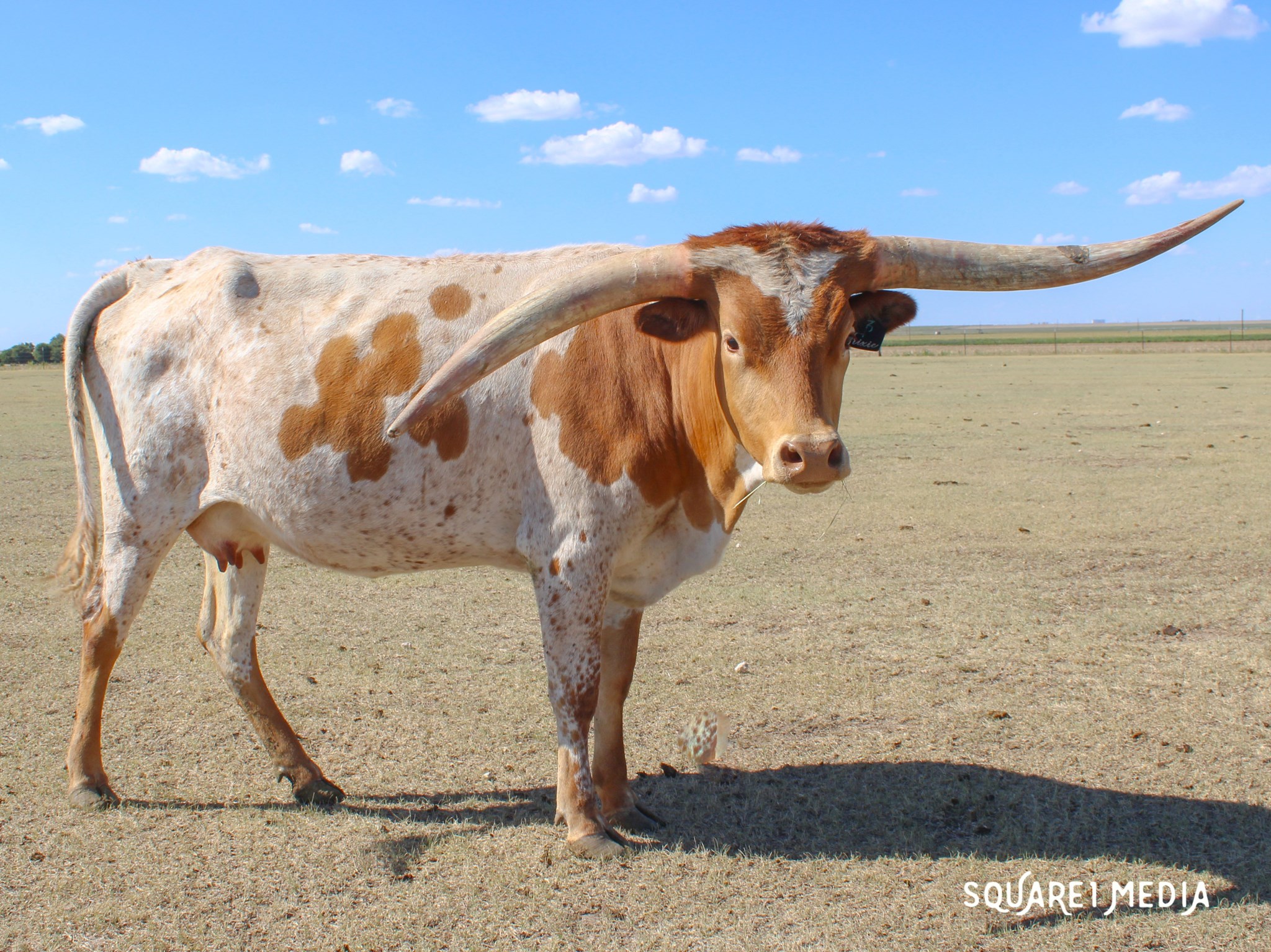 We are thrilled to get a polar opposite in color but FULL SISTER to our Lazy J's Dixie who sold for $50k at the Glendennings 2025 Fiesta Sale. She's stacked with genetics from Fifty Fifty BCB, Cowboy Tuff Chex and her own Sire, Fifty Shades Darker and Dam, M3 Truffle Tuff are both proven producers. She's one to watch. Her half sisters sold at this years Legacy Sale for $15k and $16k and continue to be cash cows at sales. She froze her horn as a young calf but that doesn't effect her genetics or personality, she's so sweet and raises a nice calf.