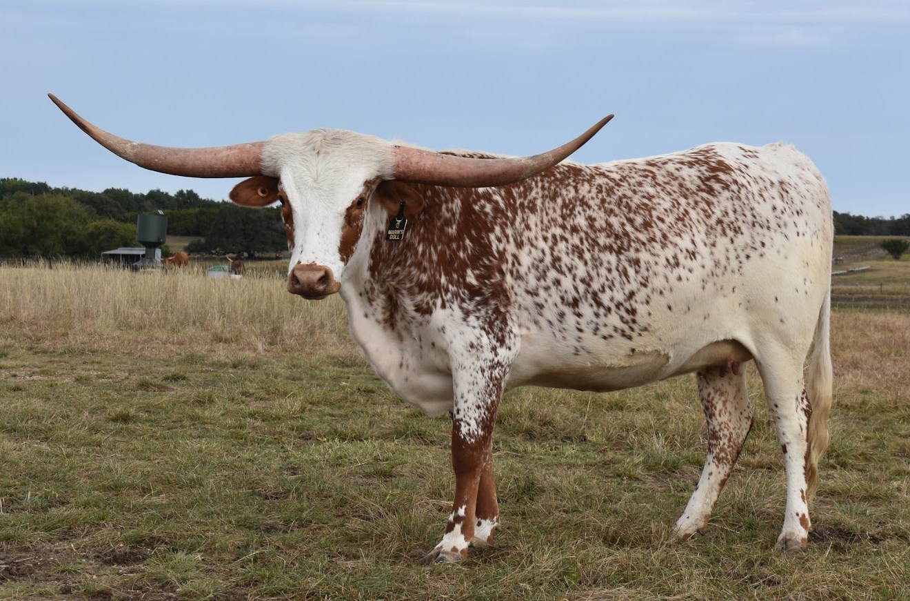 Bux Marin’s Doll is a true testament to perseverance and quality breeding. Born an orphaned calf out of TJ Bux, this remarkable young female overcame early challenges with the help of a dedicated nurse cow — and she’s been turning heads ever since. Her determination paid off in the show ring: she placed 2nd in her large class at Legends 2024 and went on to win 1st place at HSC 2024. Those achievements highlight both her strong conformation and her show-quality presence. Built solid and well-balanced, Marin’s Doll carries an elite pedigree featuring Hubbells 20 Gauge, Gun Slinger, ZD Kelly, and Concealed Weapon — a powerhouse genetic combination known for exceptional horn growth, structure, and temperament.