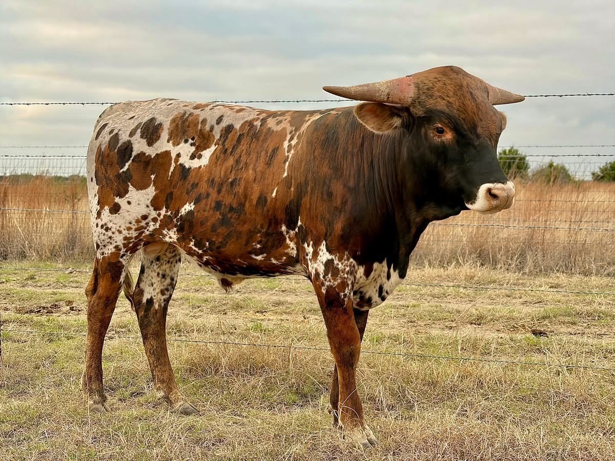 The only thing on this ranch that's friendlier than this guy is our labrador retriever. While he certainly has herd sire genetics and is an own son of the show-stopping Double S Tiger King, Star has potential as a trophy steer if pasture art is what you're wanting. He is bulky, deep, shows great early horn growth, and has more personality than any young bull we've ever been around.