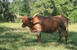 Purchased from the outstanding herd of Stockton-Burton at the Marquess Arrow Ranch production sale. She has huge horn base that are really heading backwards. We are excited to cross her genetics into our herd. Heifer calf by PCC Front Runner.