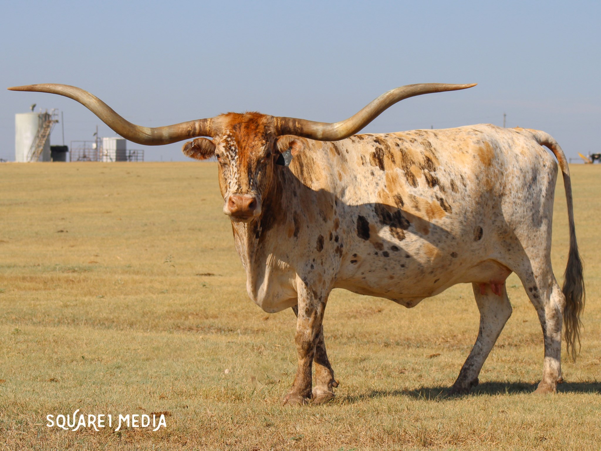 Tibby Free is a gorgeous Tri Colored Brindle with lots of flash and gorgeous Texas twisty horns. She's got lots of old school genetics we love and carries on that Juma coloring we love. With a mid 80's twist and a proven producer for twisty and big bodied offspring, she's a proven winner.