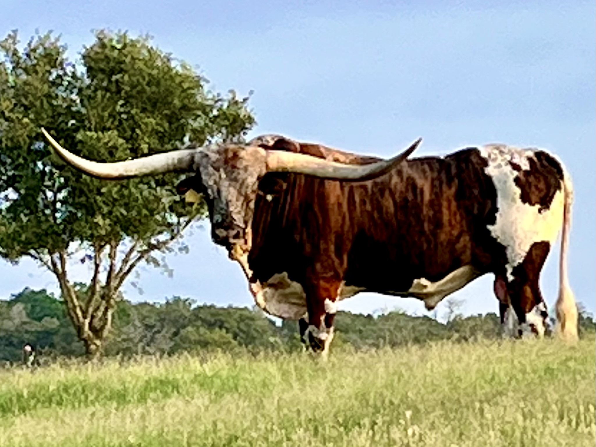 Acquired from McCombs Ranches at their 2021 Vintage Longhorn sale, this bull represents the best of RM breeding. The partners are excited to use him on some of our elite cows.