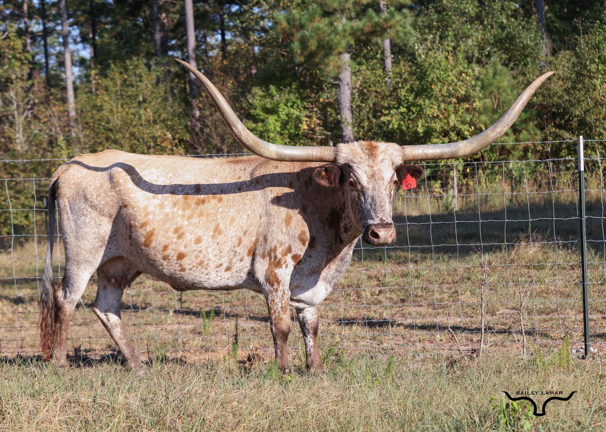 This cow is an own daughter of the great Ringa Dinger and she’s a full sister to the dam of Fifty-Fifty BCB, Ringaling BCB. She’s a solid producer. This is a money cow. She’s a good dam with plenty of room to carry a calf in that long, deep body of hers. She’s easy going and no trouble to work. She's bred to Hello Darlin’.