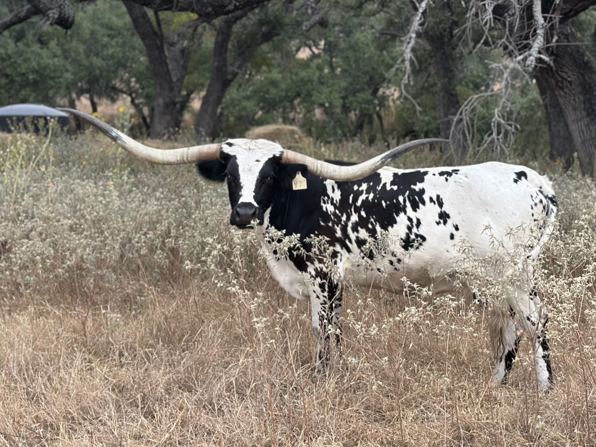Colorful young black and white heifer calf out out of the legendary Texana Van Horne cow; sired by CV Cowboy Casanova.