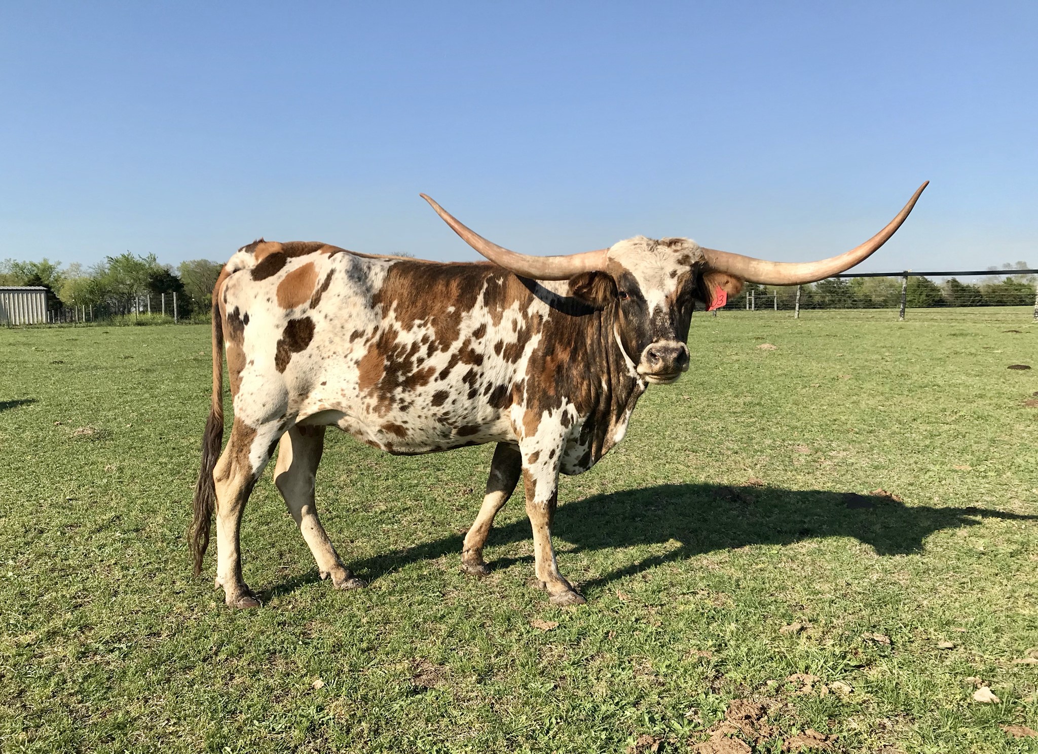 Who hasn’t heard of the beautiful Jester cow? This is her grandaugher who hasn’t fallen far from the tree. She’s big, colorful and sweet! This young cow is sired by Cowboy Chex and is bred to the great Fifty-Fifty BCB for a spring calf. Great genetic is a must for predictable offspring and Jesta Cowgirl has it in this package